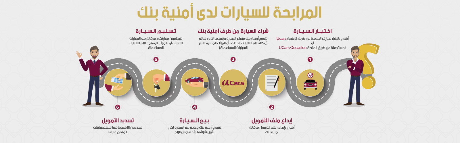 سواء كان احتياجكم يتعلق بسيارة جديدة أو مستعملة ، يقدم لكم أمنية بنك الحلول التي تتناسب مع متطلباتكم من خلال المنصات Ucars